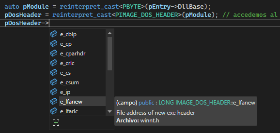 pDosHeader = reinterpret_cast<PIMAGE_DOS_HEADER>(pModule);